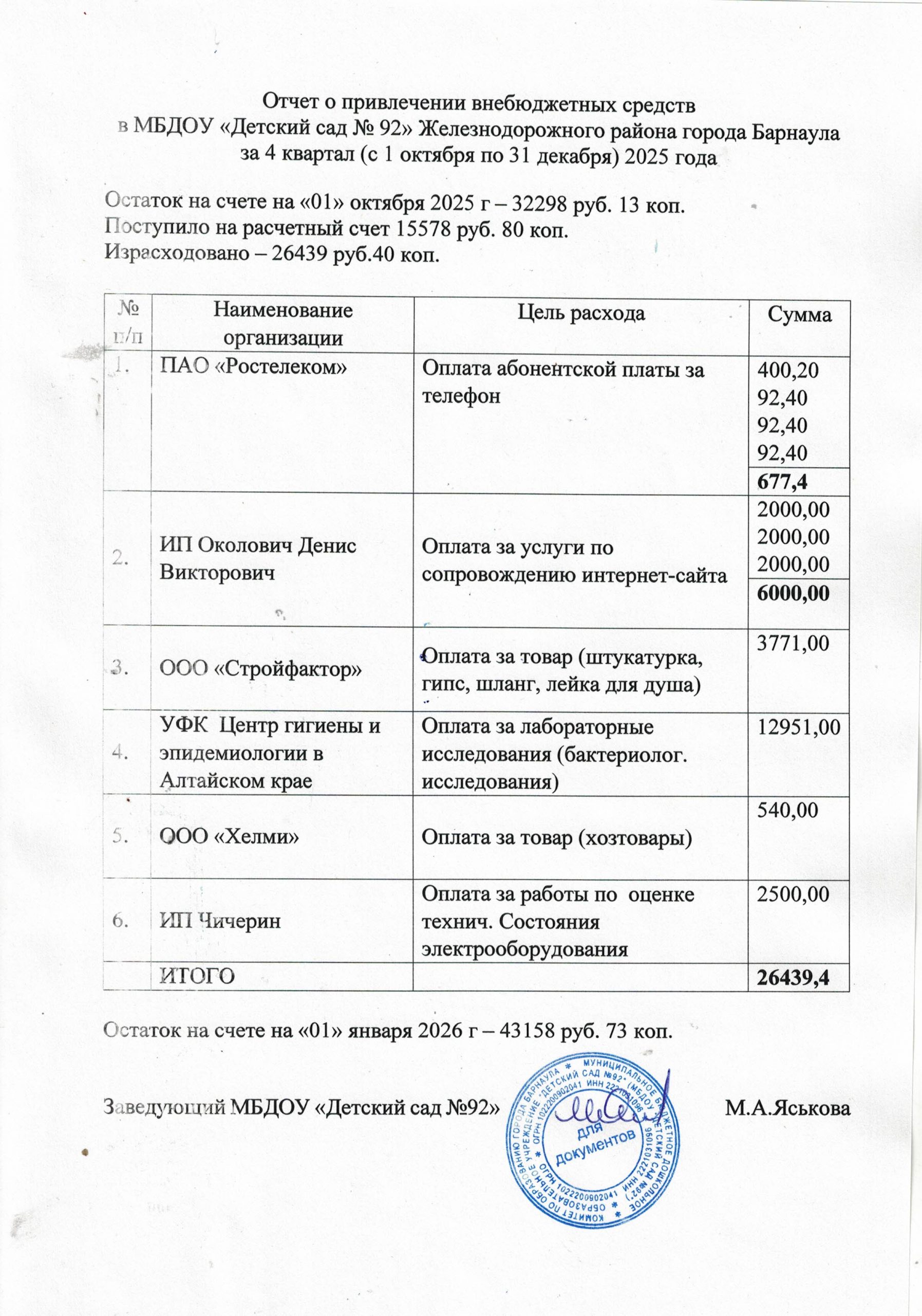 Отчет о привлечении внебюджетных средств 4 квартал 2025 год