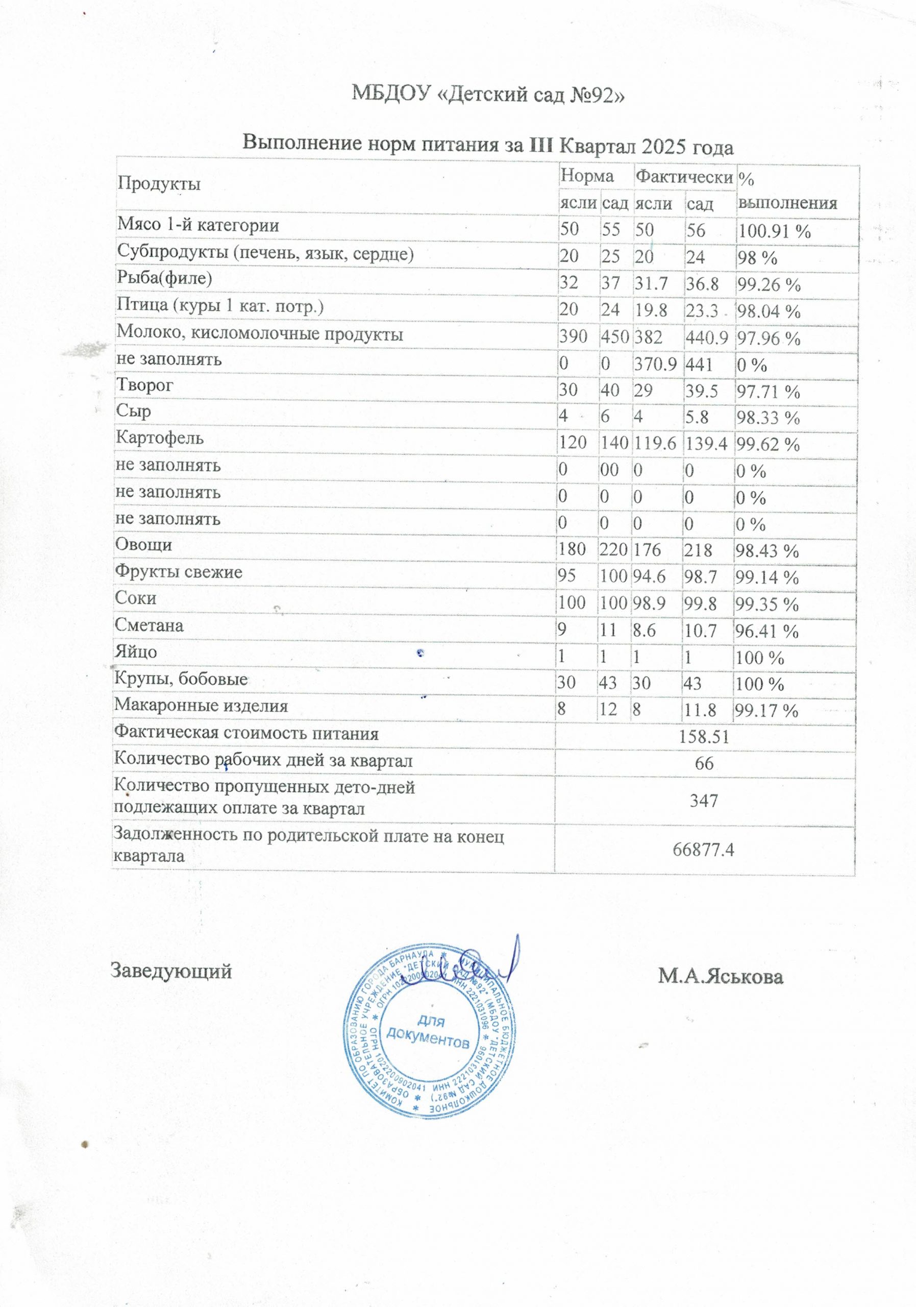 МБДОУ обеспечивает воспитанников 4-х разовым сбалансированным питанием обогащенное витаминами и минеральными веществами в соответствии с основным организованным меню, утвержденным заведующим. На основании утвержденного основного организованного меню ежедневно составляется меню – требование установленного образца с указанием выхода блюд для детей разного возраста. На каждое блюдо заведена технологическая карта. Выдача готовой продукции осуществляется только после проведения приемочного контроля бракеражной комиссии.